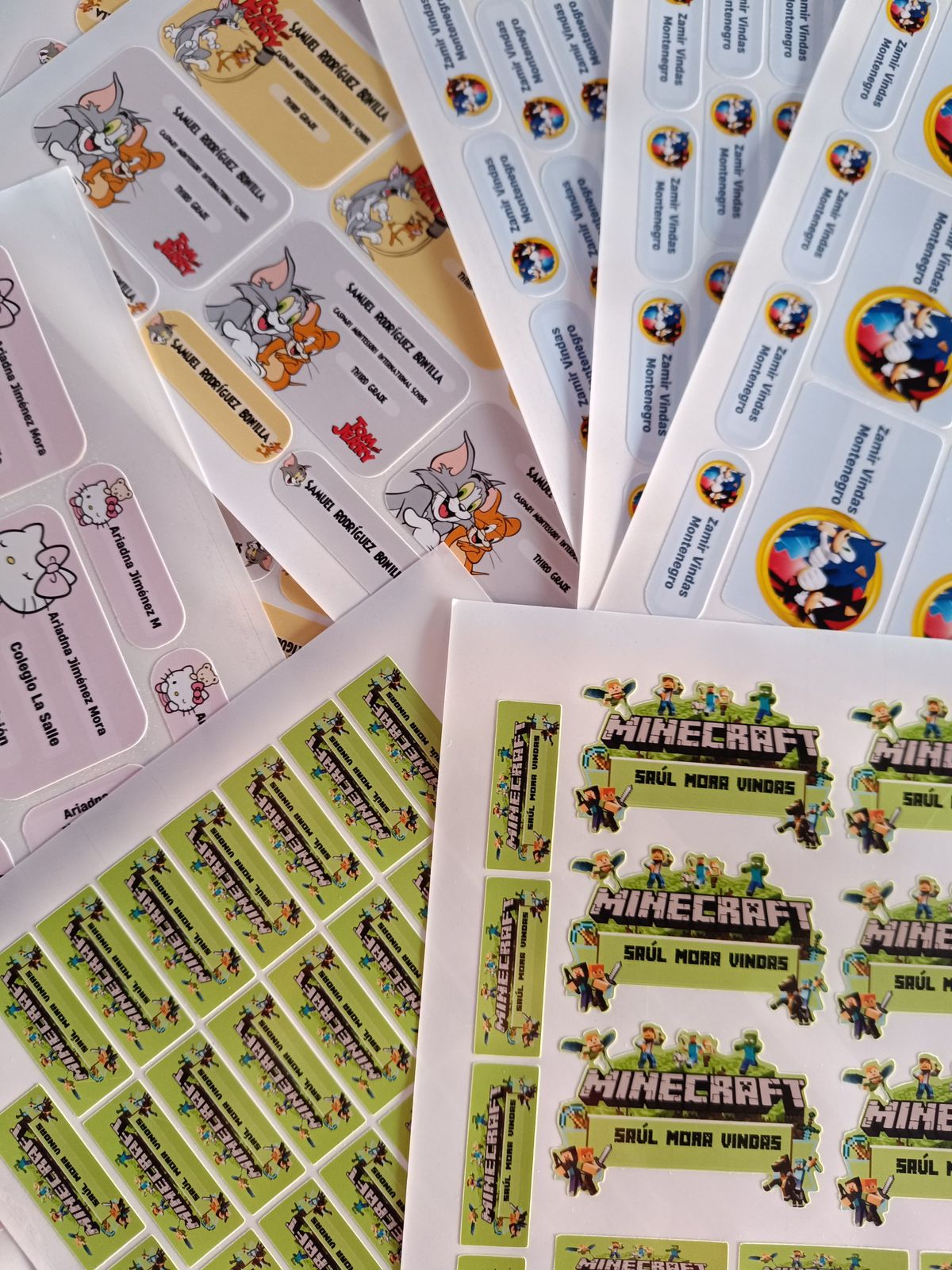 - Las etiquetas para cuaderno y libro llevan nombres, grado e institución.